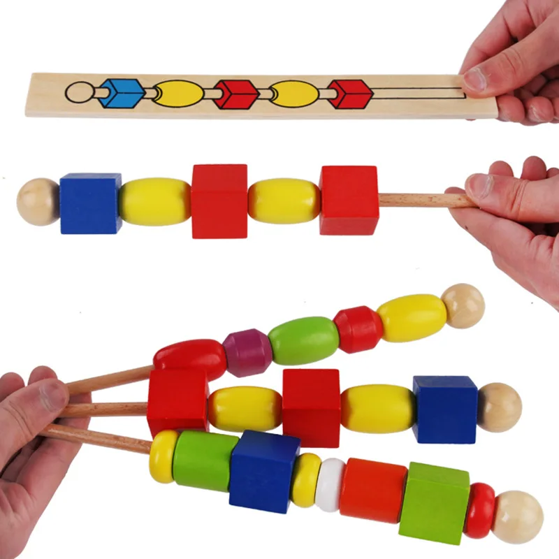 BEST Wooden Building Blocks Beads Wooden Stick Threading Beaded Box Parent And Child Handmade Motion Tra