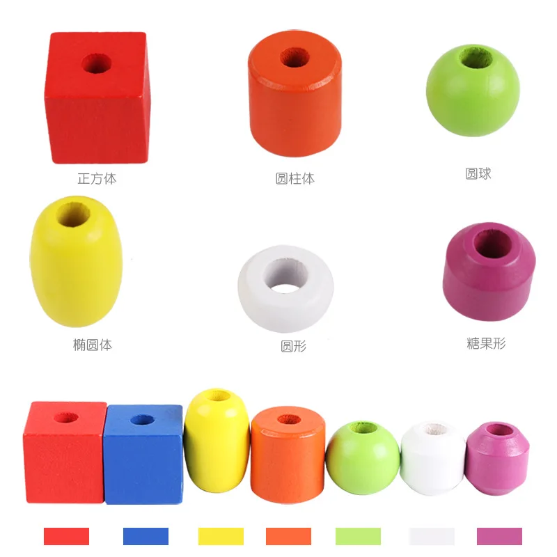 Wooden Building Blocks Beads Wooden Stick Threading Beaded Box Parent And Child Handmade Motion Tra