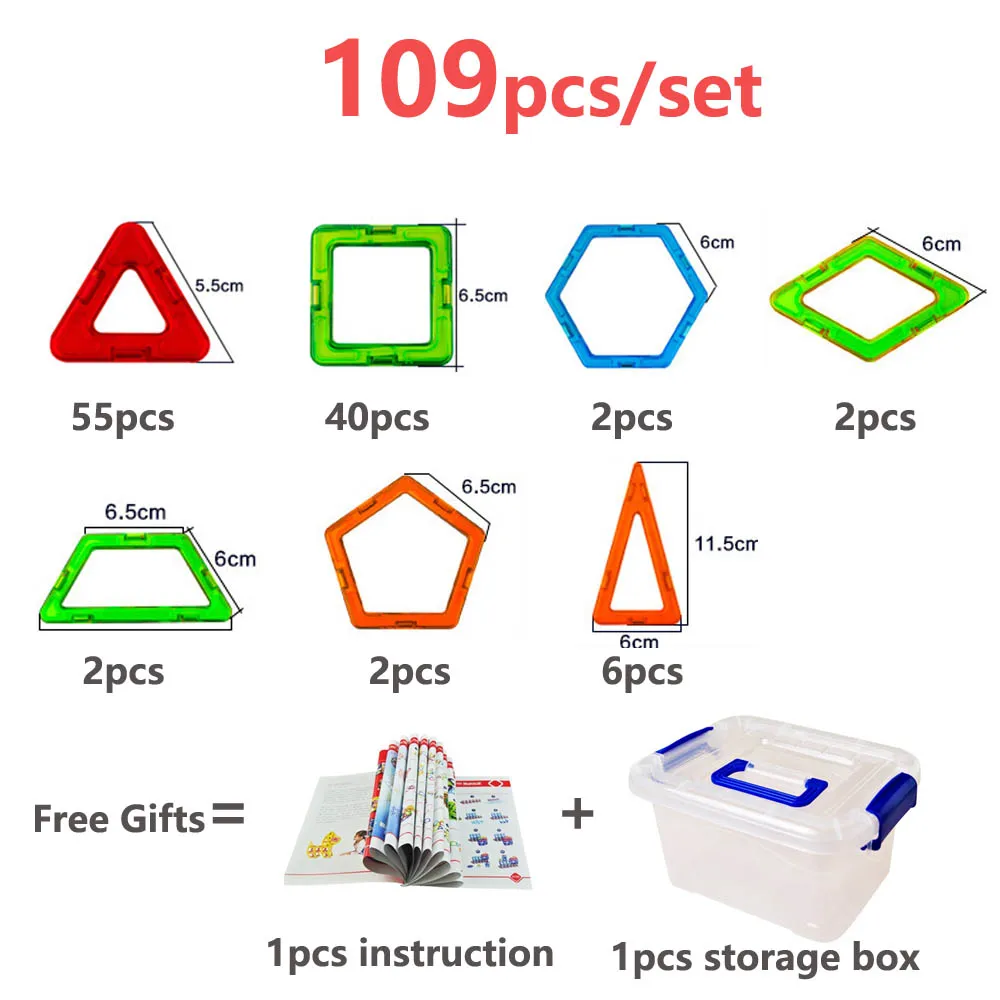 BEST QUALITY 109pcs 3D Magnetic Designer Construction Building Blocks Modeling Construction Toys Magnetic Blocks